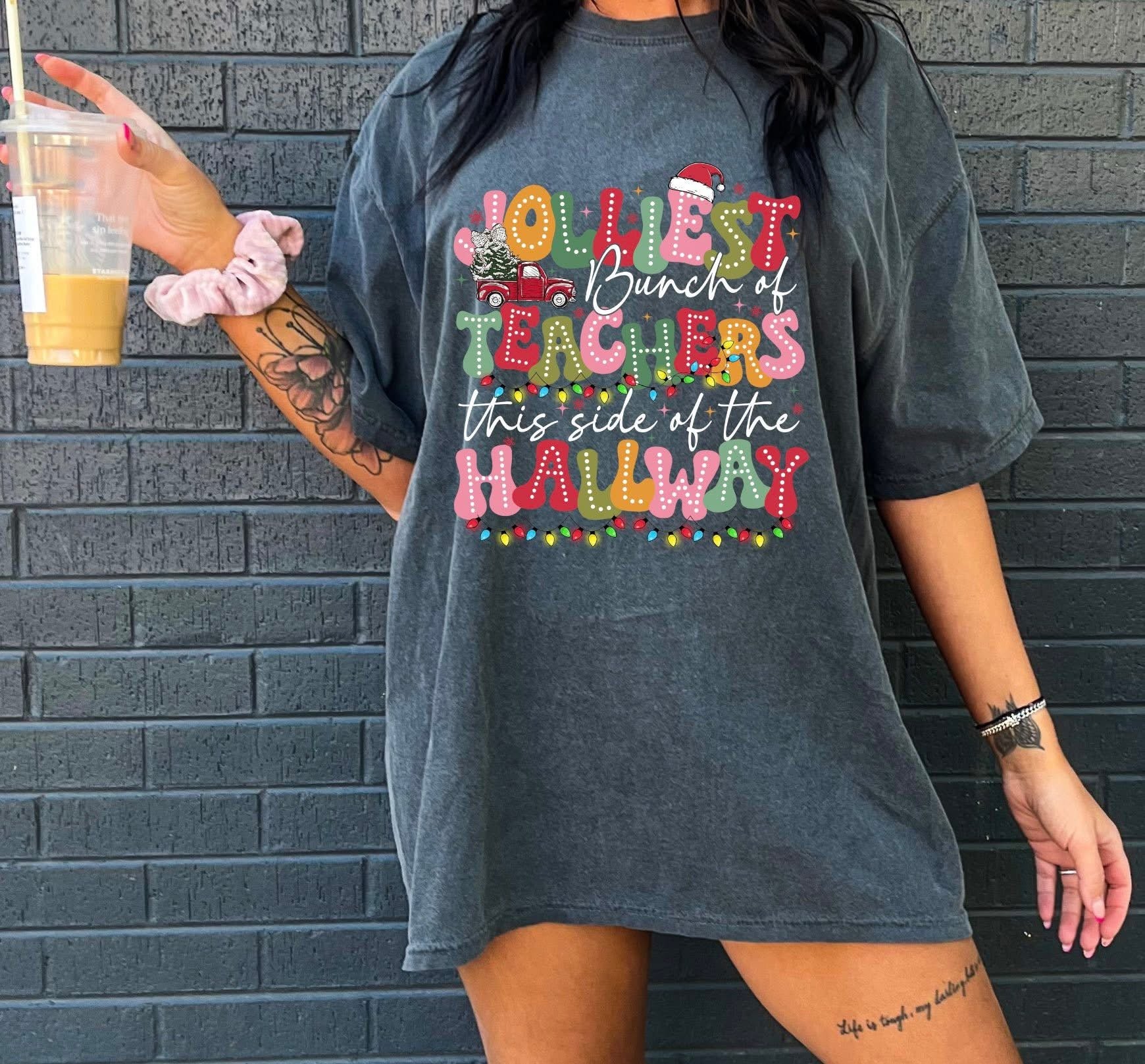 Celebrate the holidays with a splash of fun! The "Jolliest Teachers This Side of the Hallway" t-shirt brings festive cheer to any classroom. Perfect for spreading smiles, this playful design captures the joyful spirit of the season while showing off teacher pride. Cozy and cheerful, it's a must-have for holiday parties and everyday school magic.