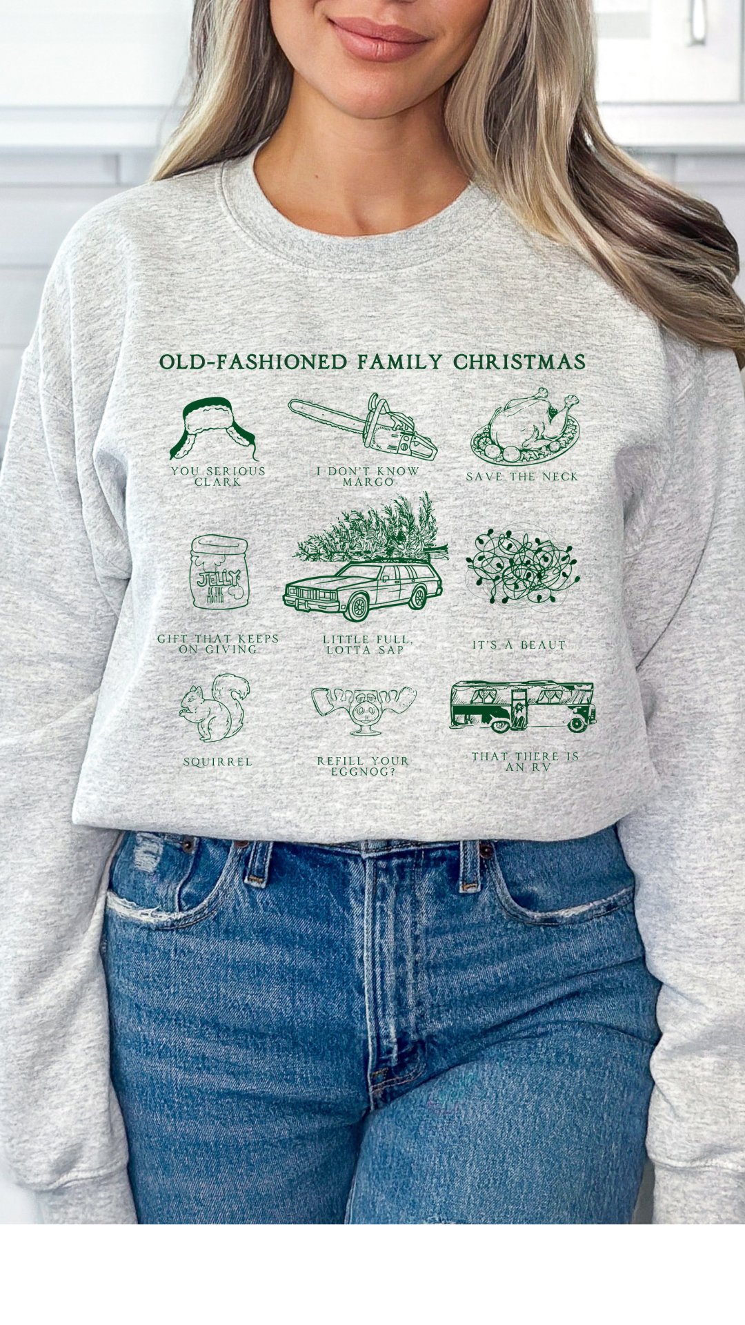 Stay cozy and festive with our Old Fashioned Family Christmas sweatshirt. Perfect for holiday gatherings, this nostalgic print adds a touch of cheer to any outfit. Embrace the season in style!